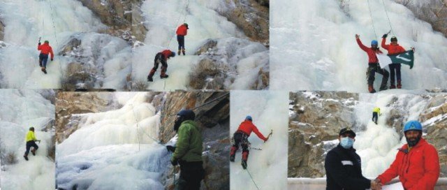 ہنزہ، نوجوانوں کا پہاڑ سے آئس کلائمبنگ کا شاندار مظاہرہ