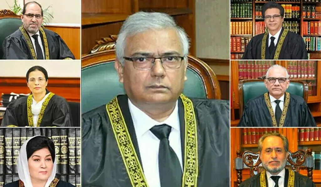 The eight-member bench also includes Justices Jamal Khan Mandokhail, Muhammad Ali Mazhar, Ayesha Malik, Syed Hasan Azhar Rizvi, Musarrat Hilali, Naeem Akhtar Afghan and Shahid Bilal Hassan. The hearing resumed on Tuesday after last being held on January 27.